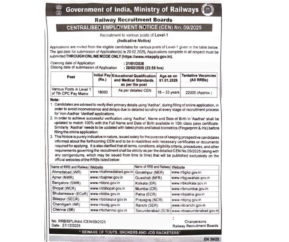 The Railway Recruitment Boards (RRB) – Recruitment 2026